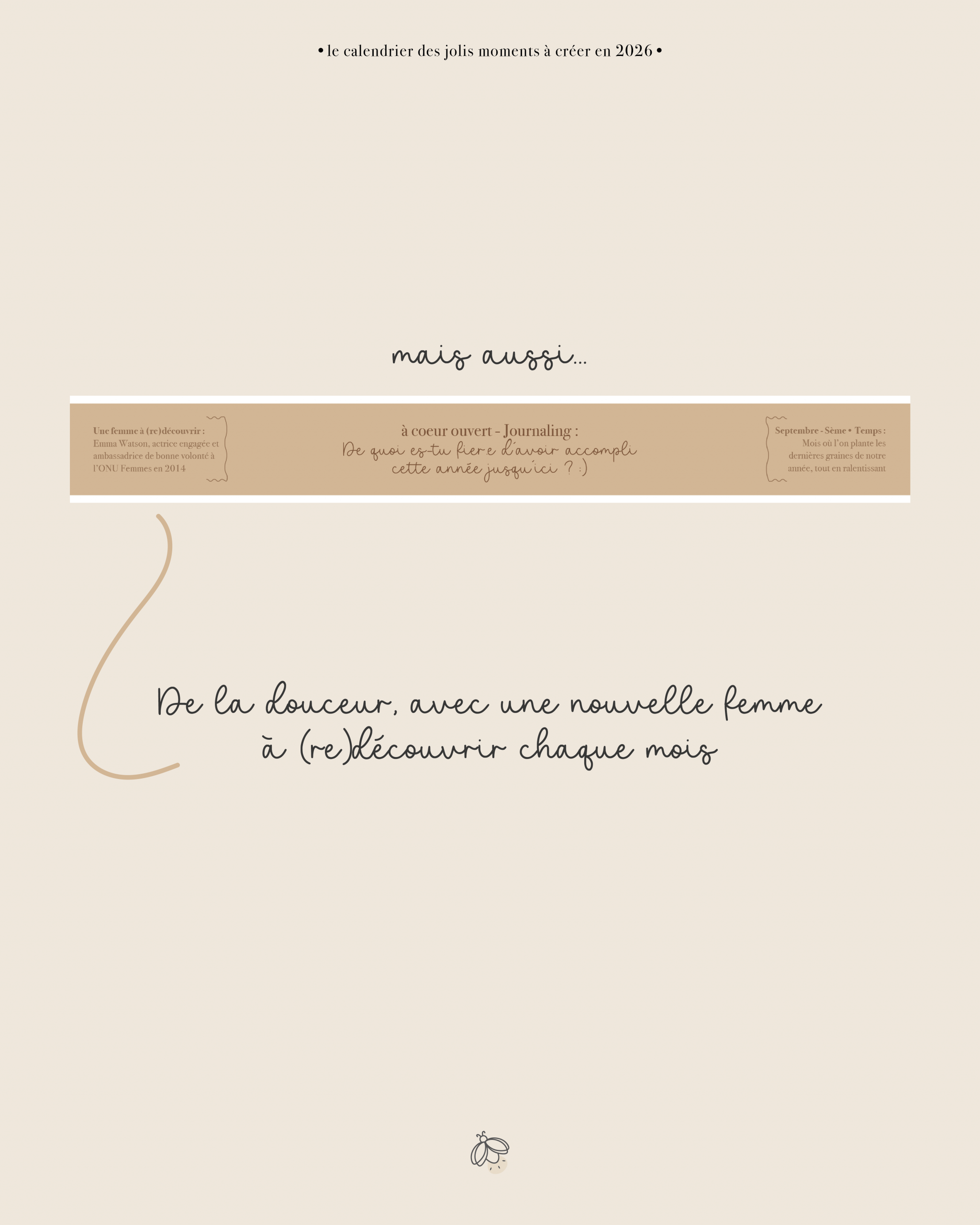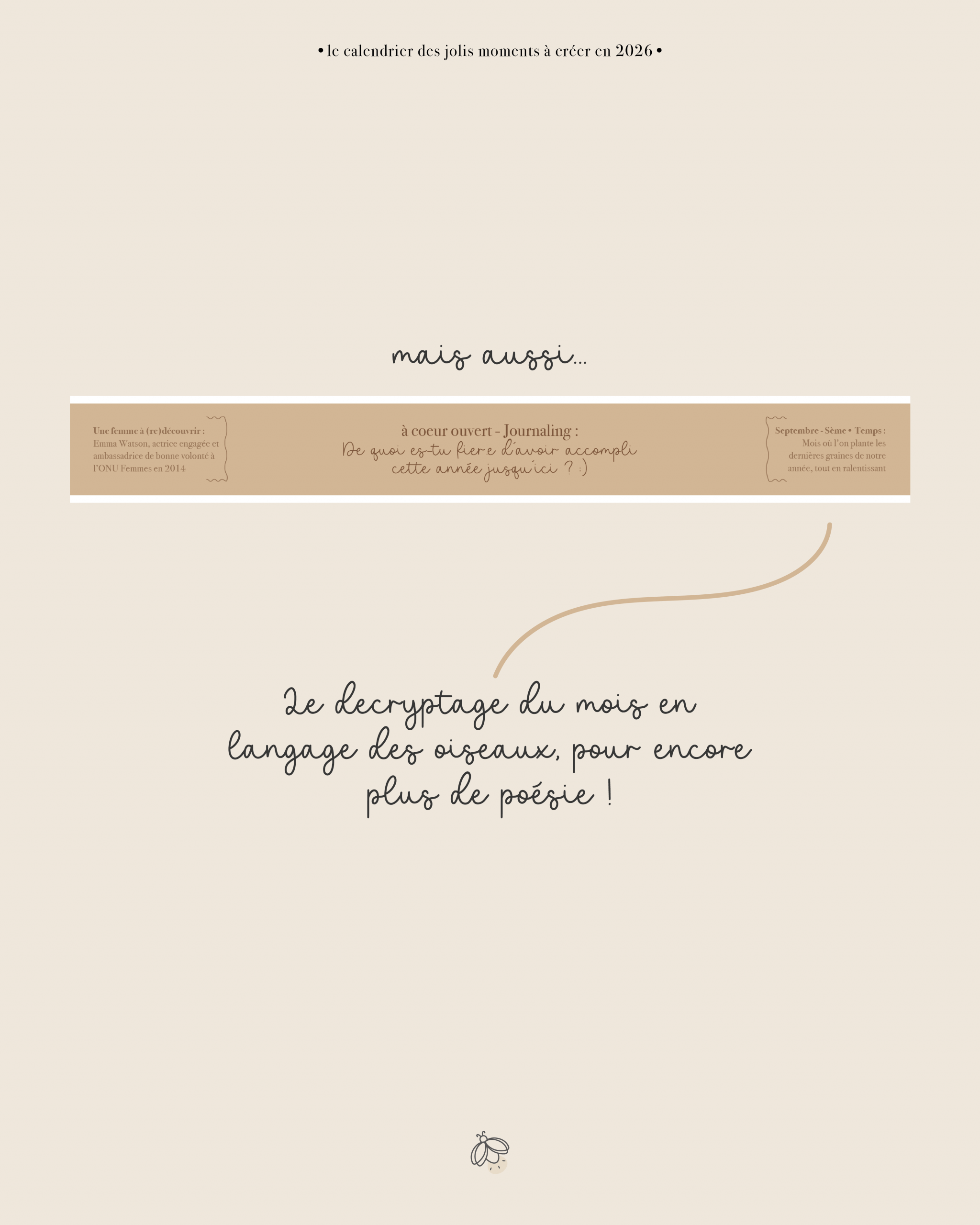 J’ai crée ce calendrier pour qu’ils puissent vous accompagner toute l’année et vous offrir des idées de moments doux et joyeux. Des moments d’instant présent, des moments à vivre avec vous-même ou avec vos proches, des moments aussi simples que magiques.
