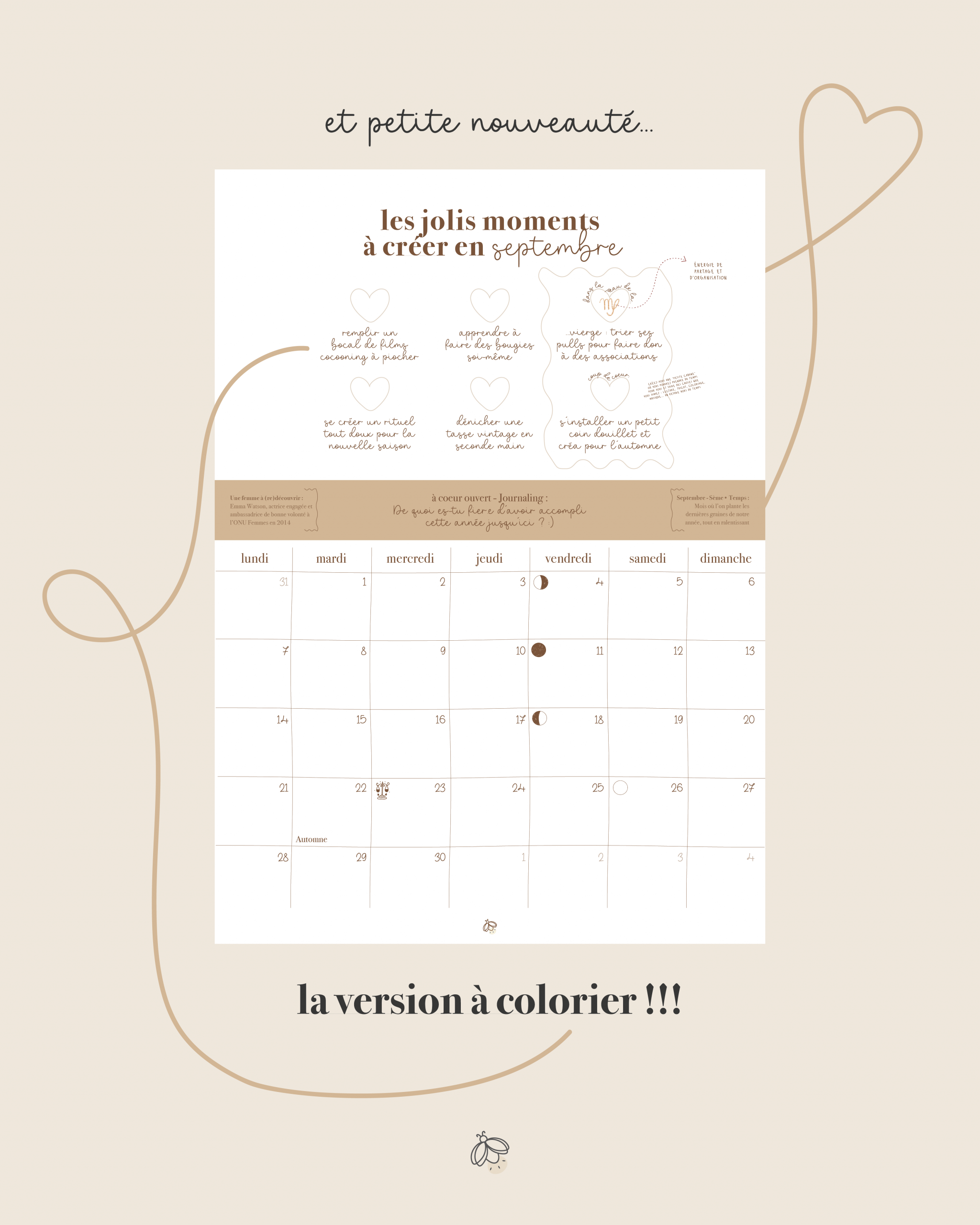 Le calendrier à colorier : celui où les petits coeurs sont vierges et une invitation à libérer votre créativité mois après mois <3