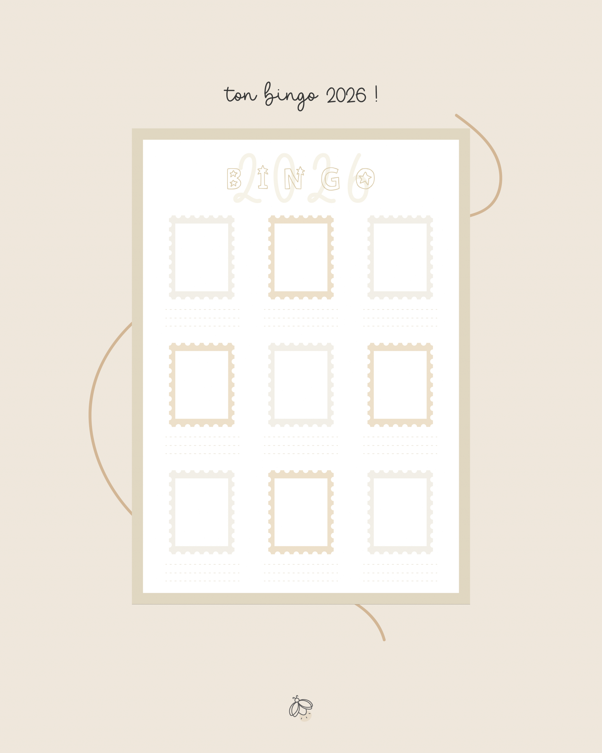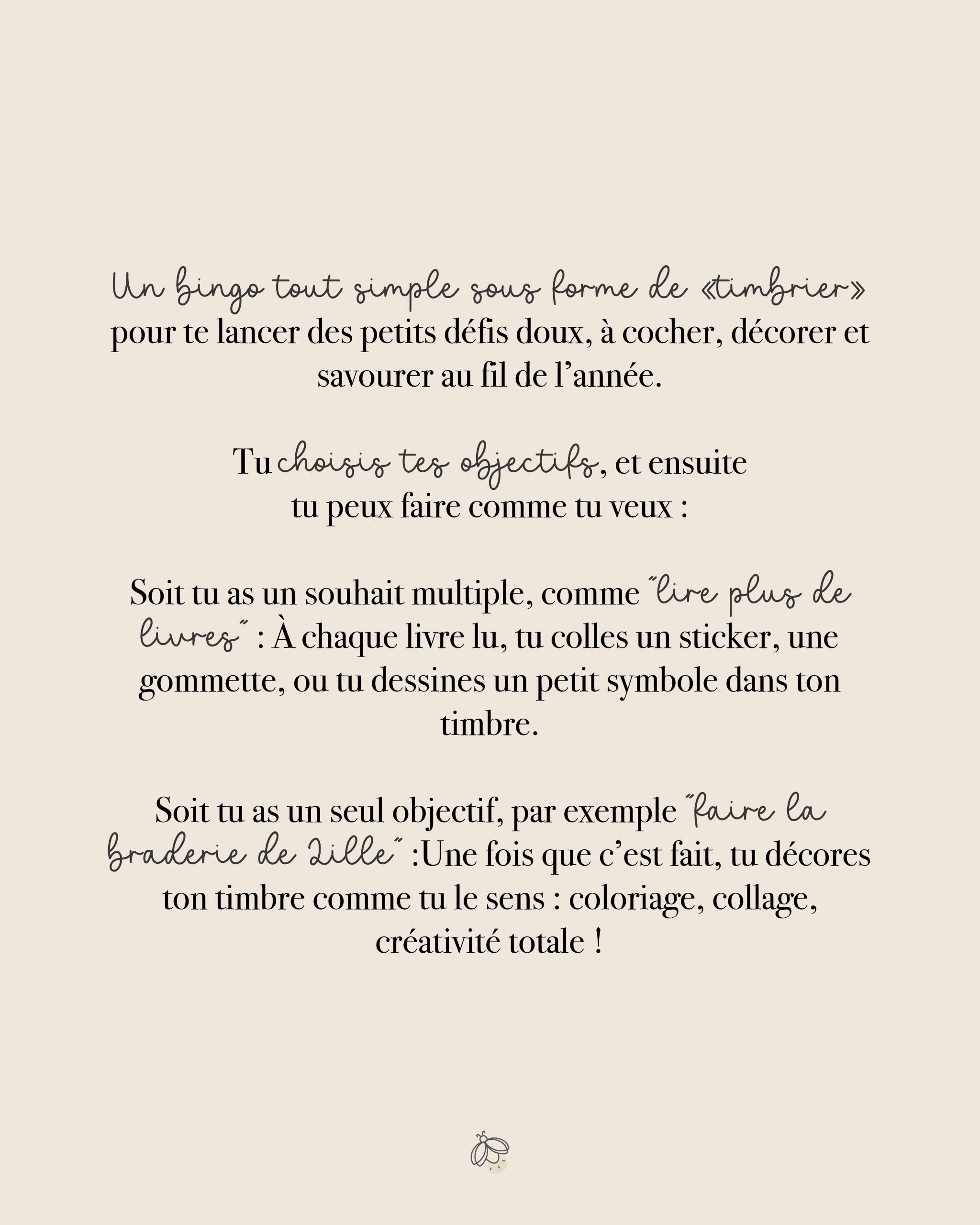 Une grille de bingo toute simple pour te créer des petits défis tout doux, à cocher, décorer et savourer au fil de l’année.